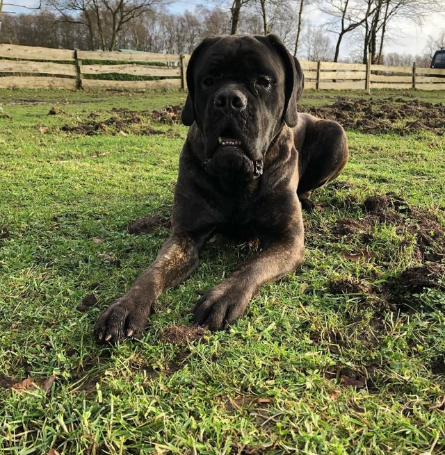 Mali, eine English-Mastiff-Hündin, war anfangs ein extremer Angsthund. Vermutlich verbrachte sie ihre ersten anderthalb Lebensjahre im Zwinger und machte kaum positive Erfahrungen mit Menschen.